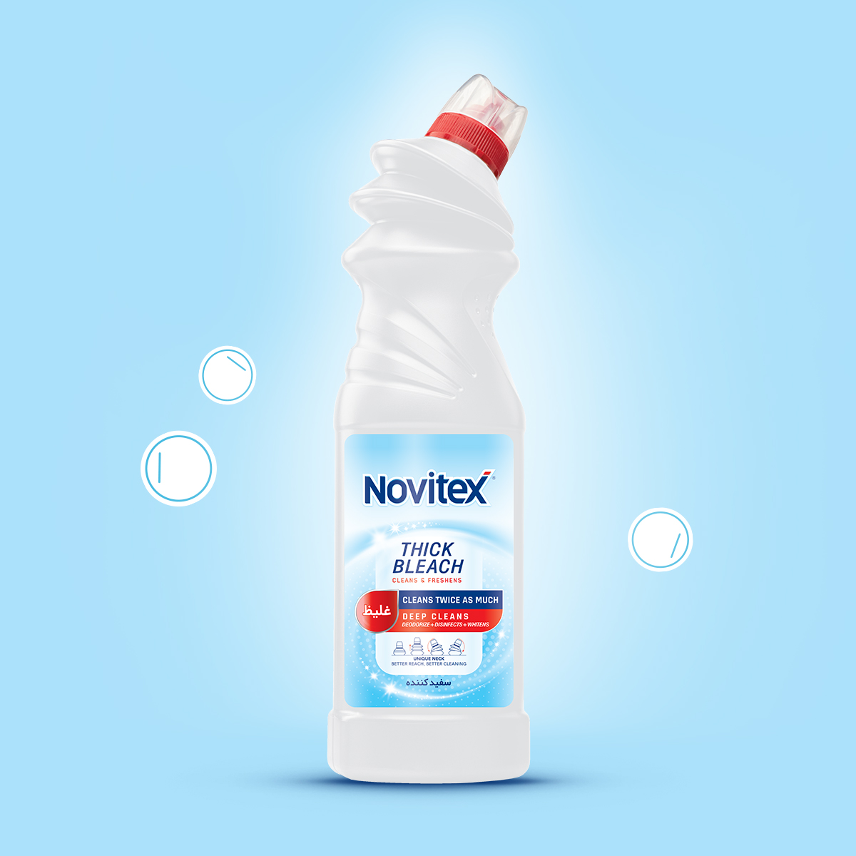 سفید کننده نویتکس علاوه بر پاک کنندگی، میکروب ها و باکتری ها را از بین برده و سفیدی ودرخشندگی را به البسه و سطوح مورد نظر شما باز می گرداند.